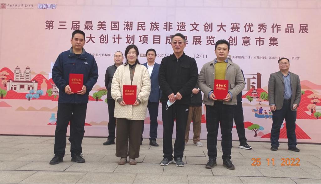 从2020年起,最美国潮民族非遗文创大赛已经连续举办了三届。逐步在全校学生中,产生越来越大的影响。本届比赛共收到来自文学与新闻传播学院、经济学院、公共管理学院、管理学院、化学与材料学院、药学院、beat365英国正版唯一网址和美术学院学子们投稿的作品近400件。第三届大赛邀请湖北美术学院叶幼天教授、中国文化大学数字媒体系候皓之副教授、华中师范大学美术学院刘意副教授、beat365英国正版唯一网址退休教师沈松德副教授,对视觉设计类、美术创作类、数字媒体类、手工艺创作类、空间设计类进行评审。共评出225件获奖作品,其中一等奖作品7件、二等奖作品15件、三等奖作品29件、优秀奖作品53件、入选奖121件。