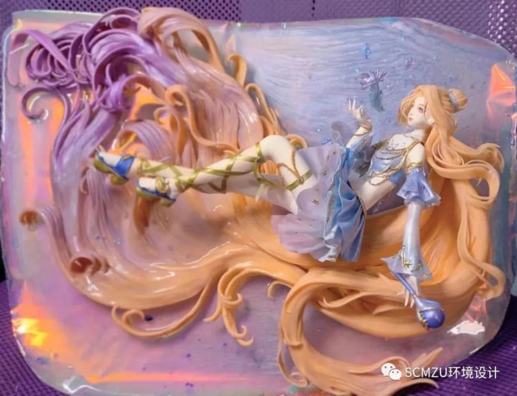 作品历时一个月,从零开始打造英雄联盟游戏人物“萨勒芬妮”新皮肤。运用复合材料制成,主要材料:树脂粘土,软陶,滴胶,铁丝,色粉,丙烯,珠光粉等等。