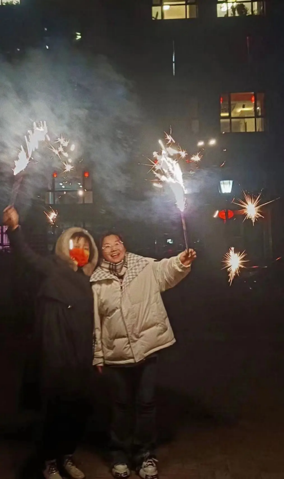 我们与家人相聚,体会阖家团圆的温暖,珍惜亲人陪伴的美好时光。山高路远梦萦绕、千里回家解乡愁,新的一年,希望大家都可以多与家人沟通,分享自己的生活,增进与家人的感情。疫情的好转让今年新年更加的热闹,寂静的城市也恢复了往日的活力,不禁让人们感慨万分,鄢桢桢同学写下了这样的新年感怀:相比高考之前的春节,今年的春节格外轻松,终于可以在年三十和大年初一的日子里与一大家子亲人一起度过,往年的春节是在课业和升学的压力中度过的,很少有机会和一家人一起度过完整的春节。年三十的前一天我们就启程回老家,今年回家的路上格外通畅,平时两个小时的路程仅用了一个半小时就顺利到了老家,首先迎接我们的就是外婆做的南瓜馍馍,香糯软弹,香的很勒!和外婆外公吃完饭,便到奶奶家开始准备第二天的年夜饭了,在年三十的一天吃了两顿年夜饭狠狠满足了我对新年的期盼,真的超级香,外婆和奶奶各显身手使出浑身解数做出了一大桌香喷喷的年夜饭。唯一没有尝试过的一次活动就是一起去祭祖祈福,往年都是因为学业而无法参加的我今年很是期待这一环节,一早我们便拿上祭品爬山找祖坟,上香,磕头。一样一样下来确实挺累的,但让我切实体会到了风俗习惯的庄重与历史的厚重感。为了消消食饭后我们打算为老人家扛点柴火回来,一路上其他邻居向我们投来羡慕的眼神,整整十二个人一起走向柴火堆,大人拿大柴小家伙们就人手一堆小柴火棍,画面温馨的快让我怀疑是不是假的了。就着捡回来的柴火升起了一小团篝火一家人围成一圈开始烤红薯,甜蜜软糯香甜可口。