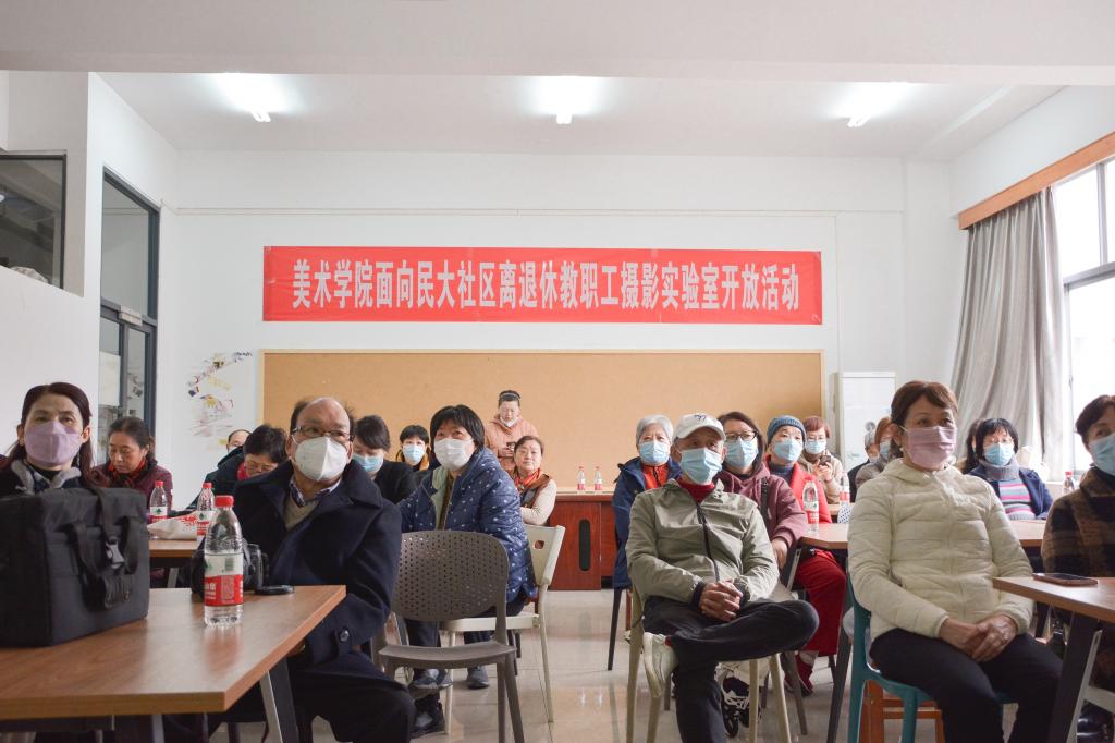 3月24日,我院在民族美术国家级实验教学示范中心开展了“流光溢彩,铸美中华”摄影主题活动。本次活动由美术学院副院长成彪主持,视觉传达设计教研室主任莫彦峰老师主讲,来自关山街道民大社区的三十余名离退休教职工摄影爱好者参加了活动。本次实验室开放活动得到了beat365官网离退休工作处和关山街道民大社区的大力支持。