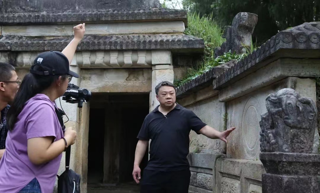 雷宇教授对唐崖土司城址重要地面遗存土王墓的纹饰进行详细讲解。