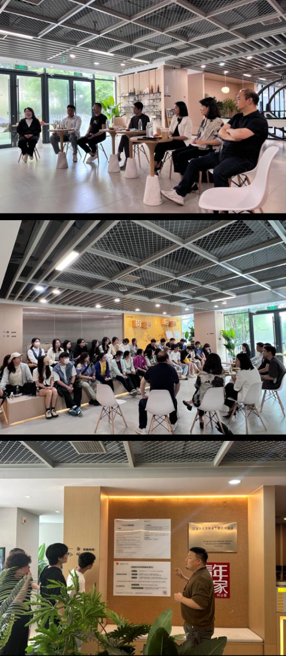 同学们也对自己在考察过程中产生的一些疑问点积极踊跃提问。同学们对于中国第四代住宅的发展现状的疑问,工程部管理部管理岗方仁杰先生回答道,如今中国的第四代建筑的实际应用主要体现在居住空间的垂直绿化和公共社交空间的垂直分布上;同学们对于关于疫情时代居住建筑与规划的变化与发展趋势的疑问,濮园项目总经理助理熊攀先生回答道,濮园项目在设计之初就考虑了后疫情这个时代背景,在设计之初就较为注重室内空间的连续性和流通性,希望做到不同空间的使用者在所在空间也可以注意观察到其他成员的行为,做到空间的软性隔断。同学们对于运营工作与设计工作两者工作的流程和联系的好奇,营销管理中心渠道负责人刘洋先生做了回答,他主张两个部门的工作是在一个在项目之初制定的发展策略和投资预算的限定下,在来回设计和修改中,设计部门将运营部门设想的交互场景转译为功能化的空间,两者相辅相成。