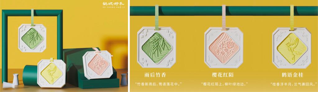 2023年3月,设计团队“2022首届中国鹤壁文创设计大赛”中获得全国优秀奖,获奖作品《鹤城好礼——“东方气韵香挂”设计》创意来自于诗人林逋诗句中关于幽幽香气微微在空气中浮动的联想——“疏影横斜水清浅,暗香浮动月黄昏”,产品外形灵感来自于中国古代的窗户样式,正所谓“窗锁玲珑影”古代的许多文人雅士都曾以将窗中景指为画中景,小小的窗棂方寸之间也能展现中国传统文化的“气韵之美”。该文创香挂一共设计了三种的香味和与其对应的图案样式,分别是“雨后竹香”、“樱花红陌”和“鹤语金桂”。