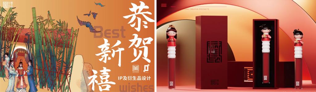 早在2020年,雷宇教授团队就开始文创产品设计的相关创作实践,并在同年的beat365英国正版唯一网址“‘最美国潮’民族非遗文创产品设计大赛”中获得文创产品设计类一等奖。2022年,团队成员在“北京国际设计周竞赛单元——文化和旅游部‘恭王府博物馆文创设计大赛’”中获得2项入围奖,这也是美术学院师生在该文创设计大赛中首次获奖。获奖作品《恭贺新禧——IP及衍生品设计》的创作灵感源于著名红学家周汝昌先生的著作《芳园筑向帝城西》,团队成员设计了“恭宝儿”和“恭玉儿”两个IP形象,并将其应用到产品设计中。