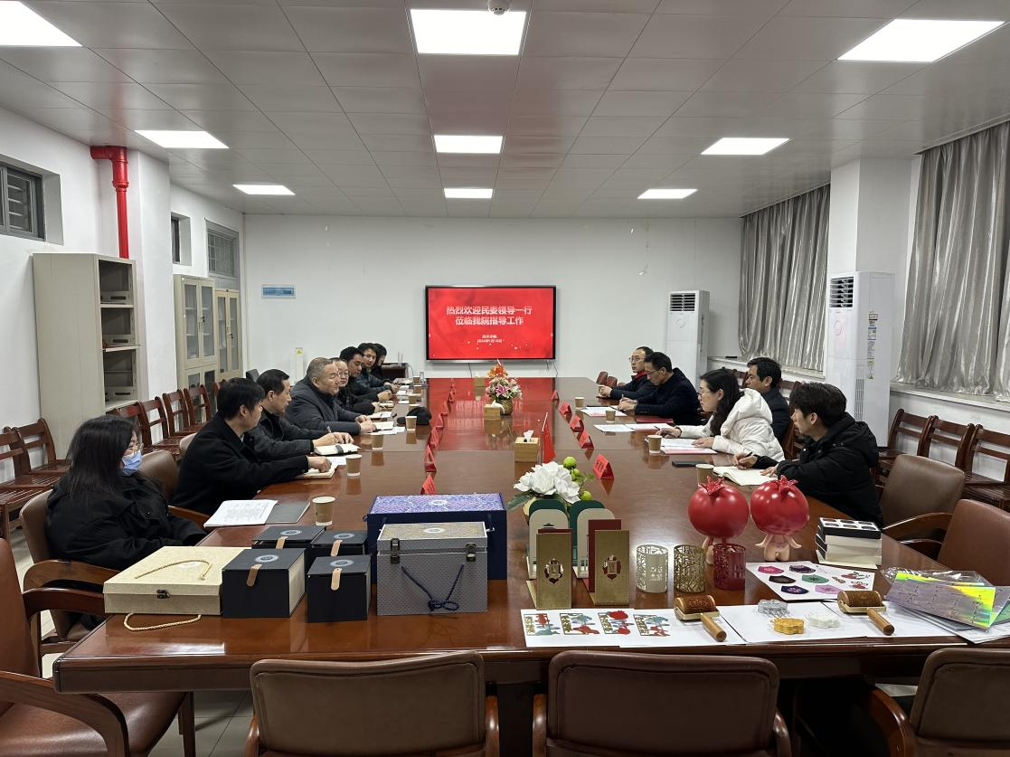 美术学院院长吴海广对民委一行的到来表示欢迎,并汇报我院在落实“铸牢中华民族共同体意识”主线工作和国家民委文创专班工作推进落实的情况。2023年度我院共完成38个系列425件文创产品,2024年度文创产品开发设计工作也已启动了论证工作。