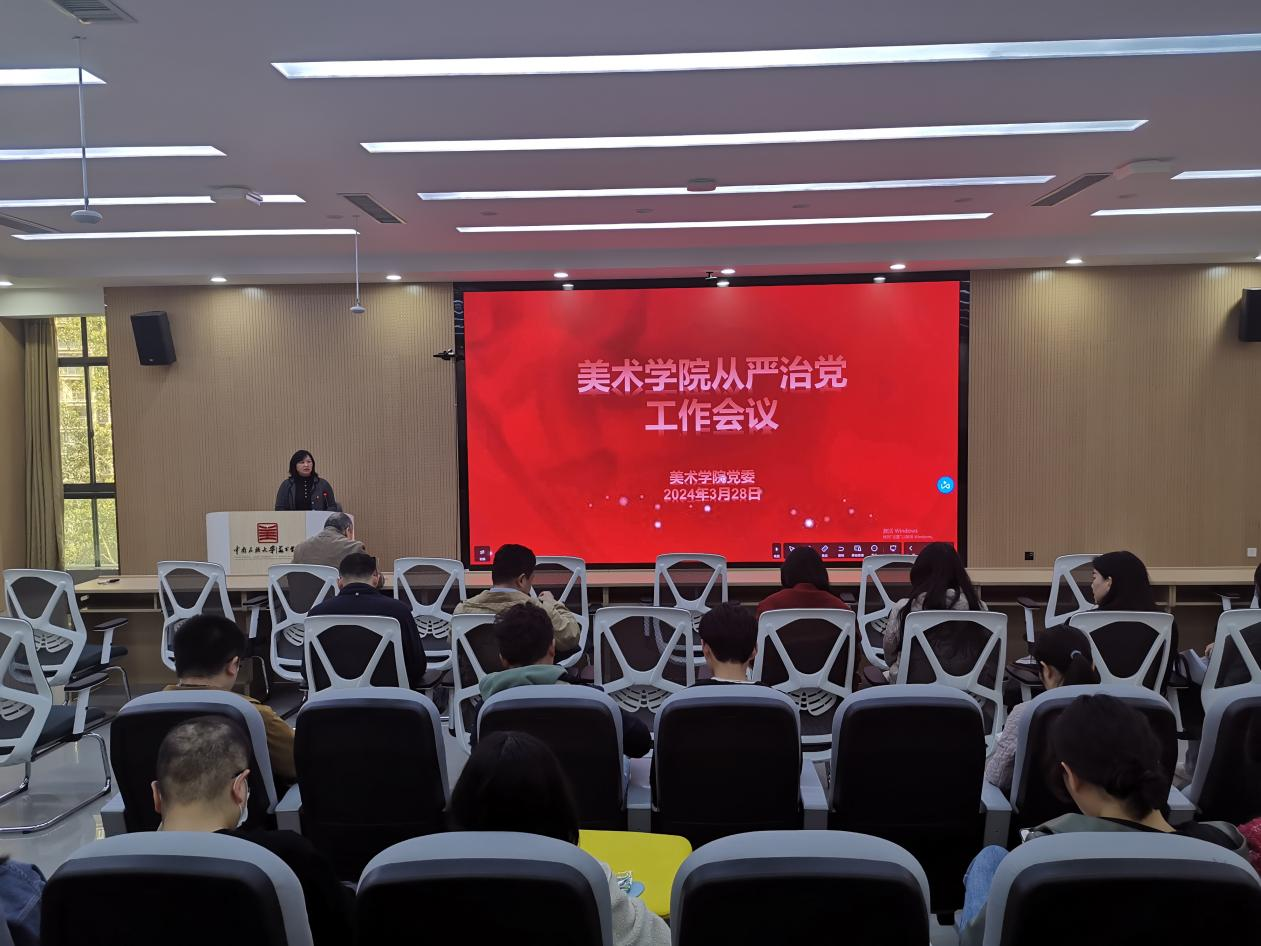 为深入贯彻落实党的二十大关于全面从严治党战略部署,3月28日下午美术学院党委在美术馆学术报告厅召开学院全体党员教师从严治党专题会议。学院全体党员参会,会议由党委书记邹反修同志主持。