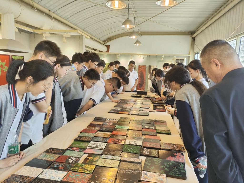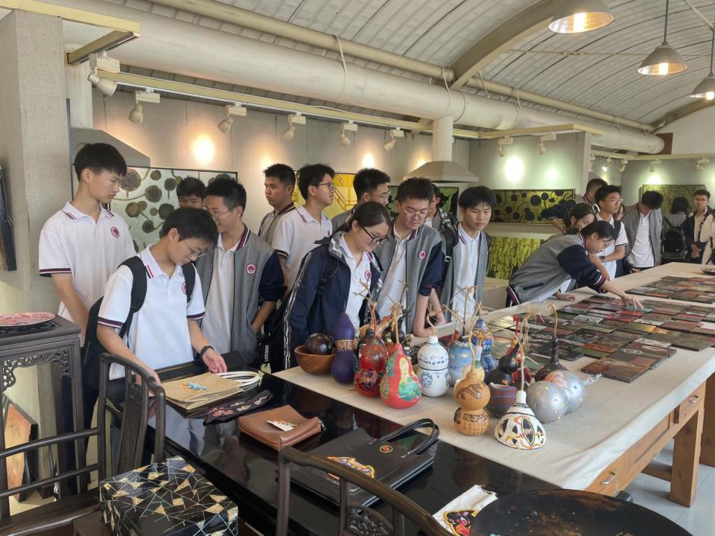 随后,文化研学团来到了漆艺展厅,感受漆艺创作的灵感和技术创新的魅力。通过与艺术品深入接触,学生们在情感上得到了一次独特的文化体验。