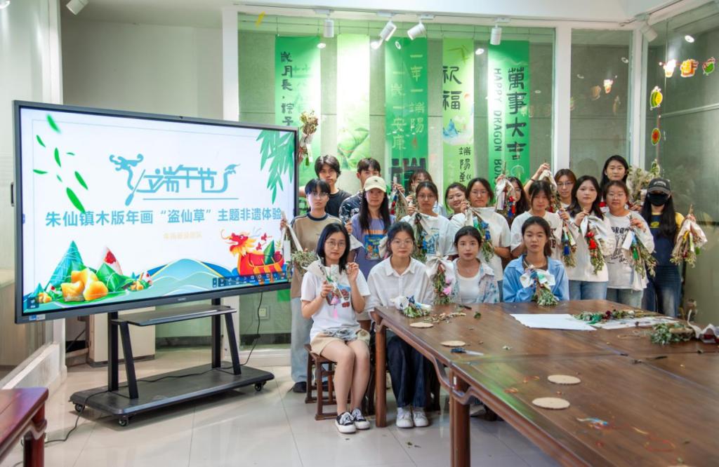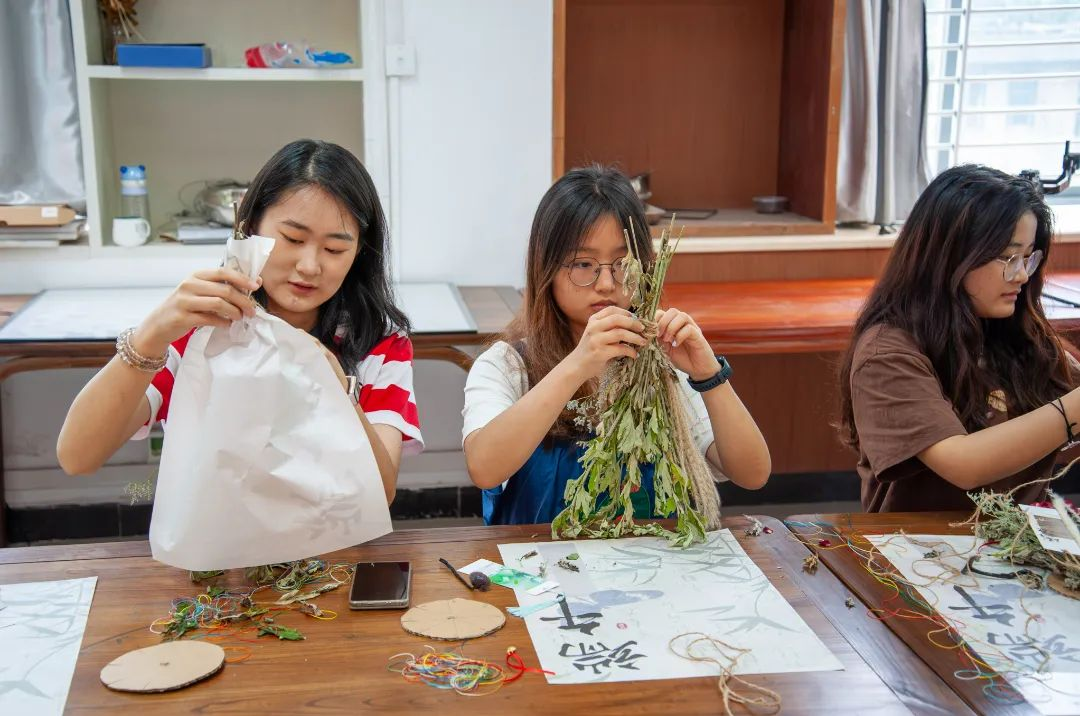 端午临中夏,艾叶香满堂,龙舟竞水处,粽角裹情长。值此端午佳节之际,美术学院联合beat365官网党委宣传部、后勤保障处、国际合作与交流处、民族学博物馆等相关单位共同策划了端午文化节系列活动。民族美术国家级实验教学示范中心开展了一场以木版年画“盗仙草”为主题的校园美育活动,姜小渊老师带领的“年画新说”团队带来了扎艾草花束、编织五彩绳等民俗体验,旨在融合非遗文化入实践,拓展校园美育新途径。