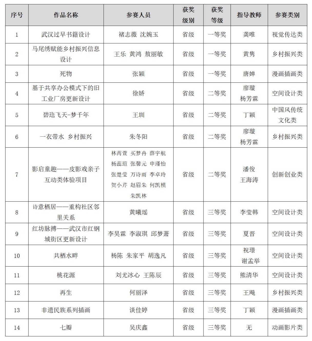 本届大赛的校级选拔赛由创新创业学院主办,美术学院承办。经过前期认真谋划、积极宣传、广泛动员,校级选拔赛共收到268件常规赛作品,经过专家严格评审,共遴选出105件优秀作品参加省赛和国赛角逐,包括创新创业、创新创意产品、动画影片、服装服饰、红色主题、空间设计、漫画插画、社会创新、视觉传达、数字摄影、乡村振兴、学术论文、中国风俗传统文化等13个类别。专项赛和计时赛,则由参赛者向大赛组委会直接投稿参加评审,参赛作品分布在吴良材眼镜、沈大成2个组别。
