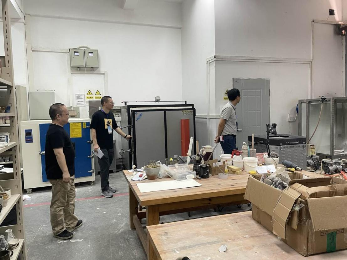 为确保2024年秋季开学实验室安全运行,及时发现和排除实验室安全隐患,9月3日,由校党委常委、副校长覃瑞带队,实验室安全隐患排查工作领导小组成员单位负责人组成检查组,对美术学院民族美术国家级实验教学示范中心进行安全检查,美术学院副院长夏晋、实验员刘旎康、黄骏陪同检查。