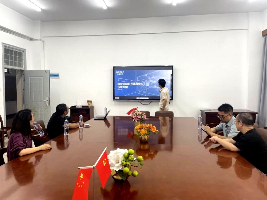 徐青莉深度介绍了欧普照明的企业背景、行业地位和先进技术等,并与学院就拟计划建设的数字光影设计实验室的实验教学内容、布局形式、选址和设计方案进行深入探讨。