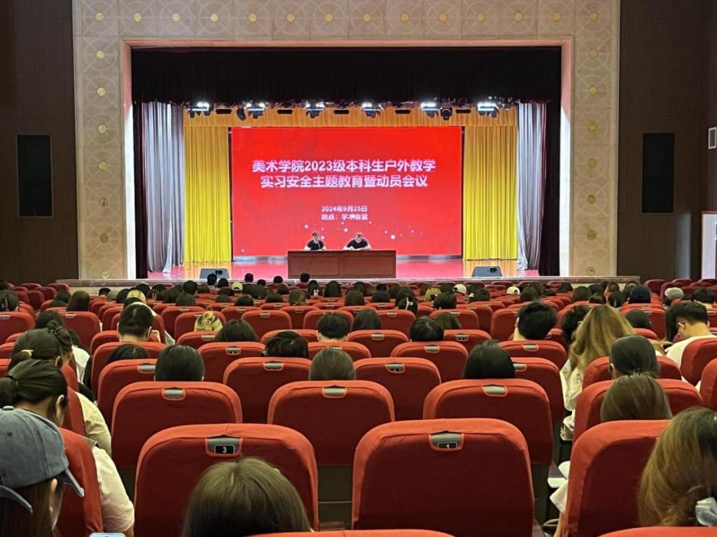 为确保2023级本科《户外写生》课程教学质量与学生安全,美术学院于2024年9月25日在学术会堂成功举办户外教学实习安全教育与动员大会。教学副院长成彪、院党委副书记聂扬眉、辅导员、课程指导老师及全体2023级本科学生共同参与。