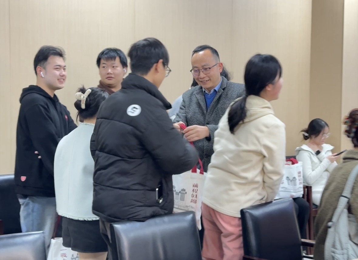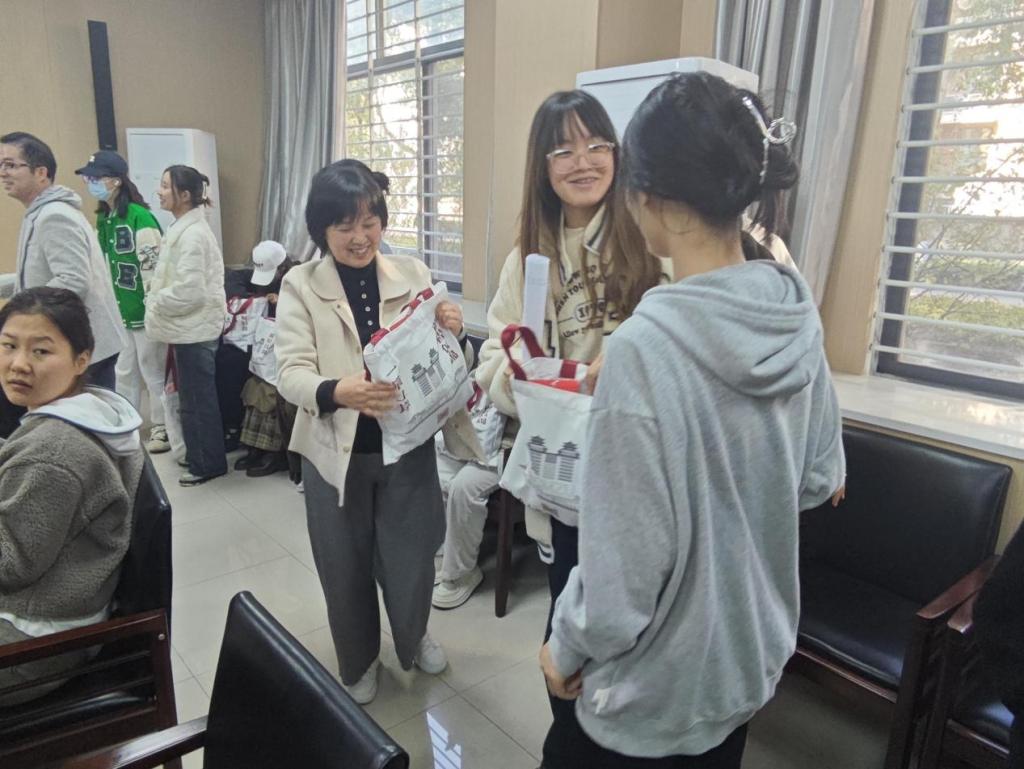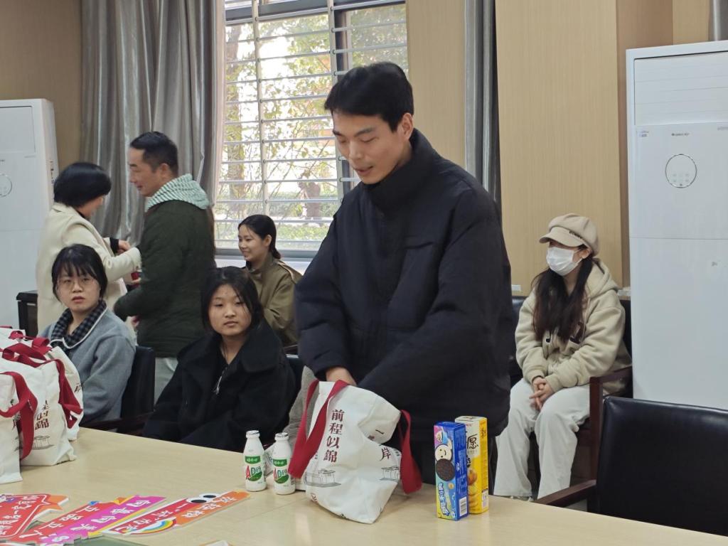 随后,院领导和班导师们为考研学子们送上了考研大礼包。礼包内容丰富多样,每一件礼品都蕴含着美好的寓意:如象征“心愿达成”的薯愿薯片,寓意“收获幸福”的德芙巧克力(德芙与“得福”谐音),寓意好运连连的旺仔牛奶(旺仔寓意着运气超“旺”)等。