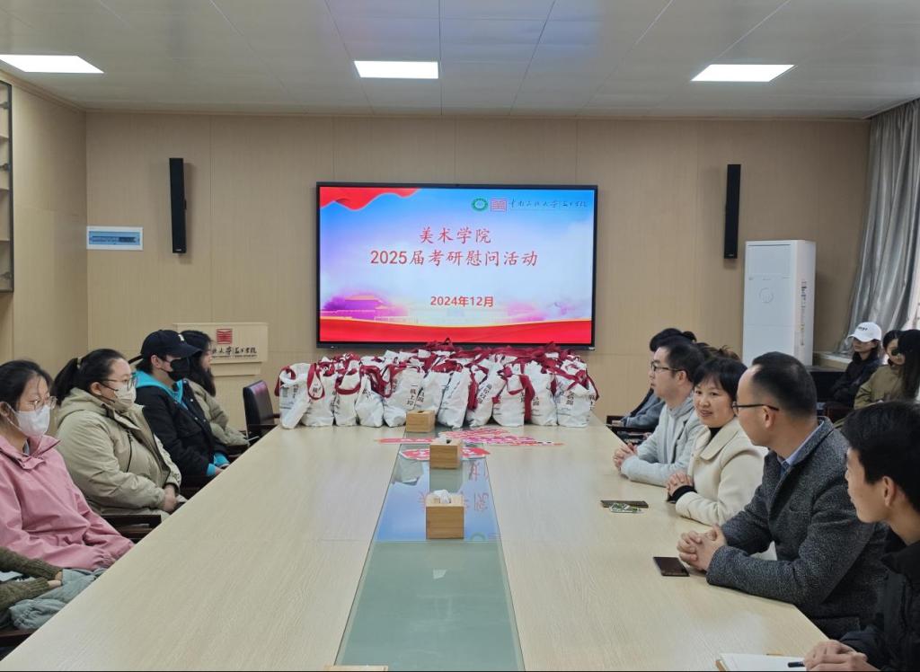 为帮助考研学子们缓解备考压力,鼓舞士气,坚定考研信心,12月2日下午,美术学院在12A107会议室举行2025届考研慰问活动。学院党委书记邹反修、党委副书记聂扬眉、2020级建筑班辅导员叶扶荣、2021级班导师代表王志勇、樊书萌、谈文娟和2025届考研学生参加活动,2021级辅导员朱啸天主持活动。