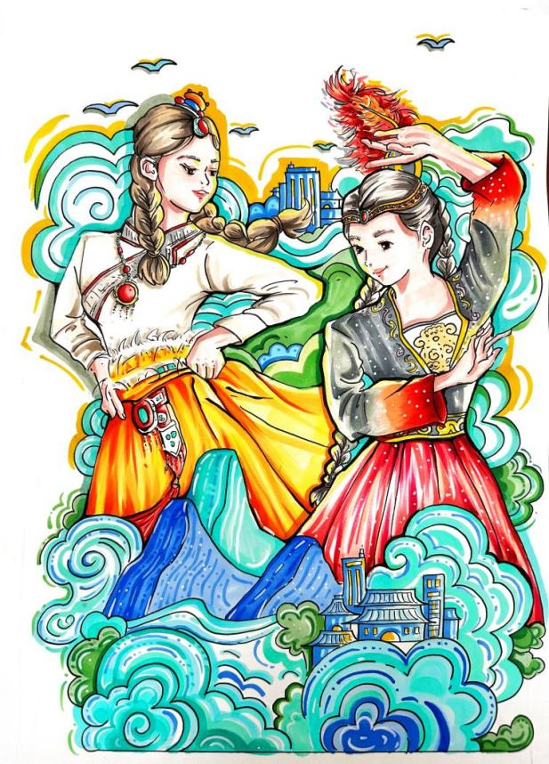 此外,本期培训班还安排了专业创作内容,学员们围绕“铸牢中华民族共同体意识”和“学史增信”两大主题,挥洒笔墨,创作出了一幅幅富有深意和创意的画作。