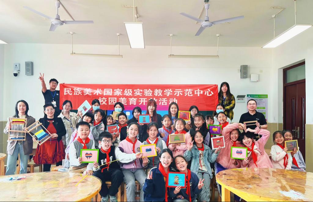 10月23日,示范中心在光谷第十一小学开展“中华美学·共织华章”校园美育开放活动。活动通过亲身体验手工编织技艺,深化了中华民族共同体意识,推动了传统文化的传承与创新,为两校间的文化交流搭建起新的桥梁。