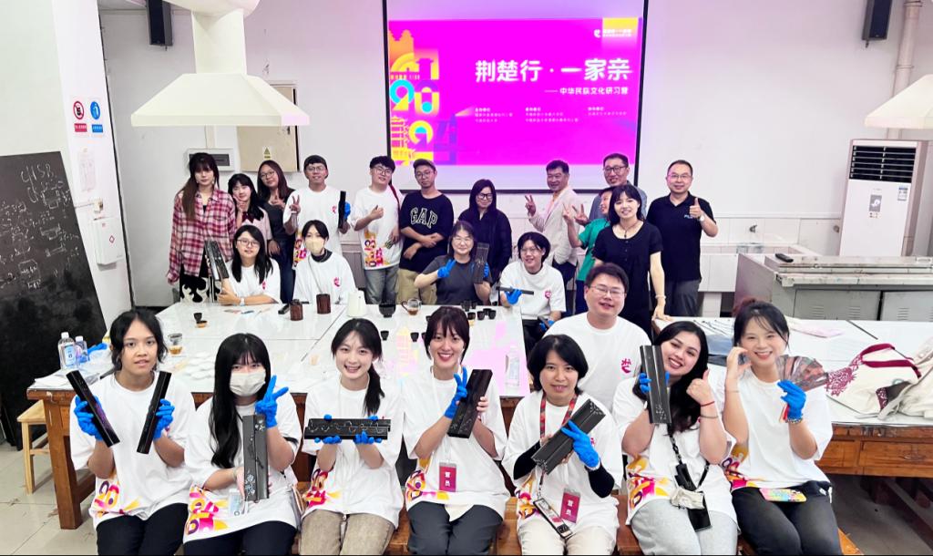 6月28日,“荆楚行·一家亲——中华民族文化研习营”暨非遗艺术交流工作坊活动在示范中心举行。来自台湾东华大学大学艺术学院与beat365英国正版唯一网址美术学院师生共同体验漆艺和皮影戏的独特魅力。活动通过沉浸式制作体验,生动展现了中华文化的丰富内涵,增进了两岸青年文化共识,搭建了友谊的桥梁,铸牢了中华民族共同体意识,构筑了中华民族共有精神家园。