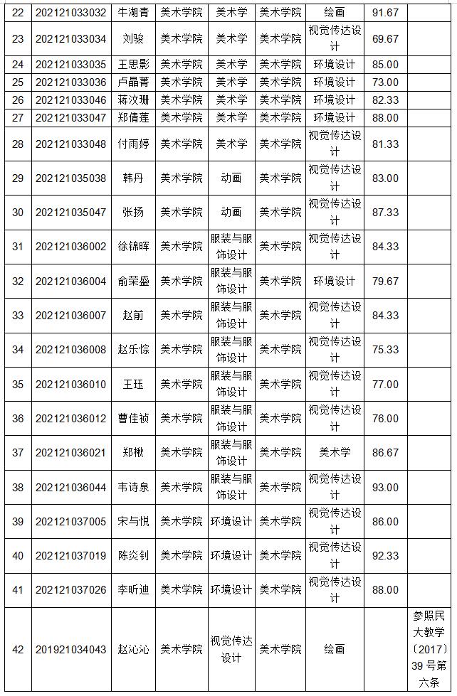 按照《beat365英国正版唯一网址普通全日制本科学生转专业管理办法(修订)》(民大教学〔2017〕39号)、《关于做好2021级、2020级本科学生转专业与大类专业分流工作的通知》和《beat365英国正版唯一网址美术学院2021级本科生转专业实施细则》的要求,现将美术学院转专业拟录取名单公示如下:
