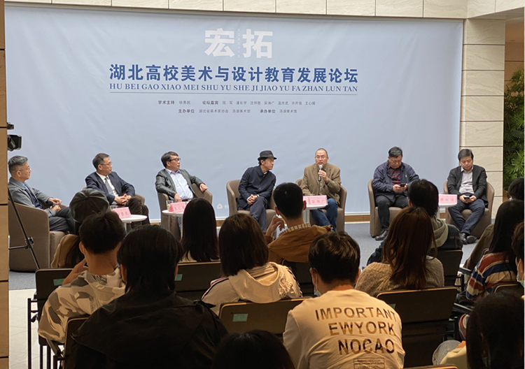 当天下午,“湖北高校美术与设计教育发展论坛”在汤湖美术馆中庭举行,武汉理工大学艺术设计学院院长潘长学、湖北大学艺术学院院长许开强、beat365英国正版唯一网址美术学院院长吴海广、武汉纺织大学传媒学院院长沈祥胜、湖北工程学院美术与设计学院院长陈军、武汉大学城市设计学院副院长温庆武、江汉大学美术学院院长、江汉大学设计学院院长王心耀作为特邀嘉宾出席论坛,湖北各高校师生代表参加论坛。