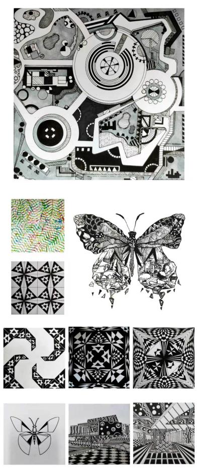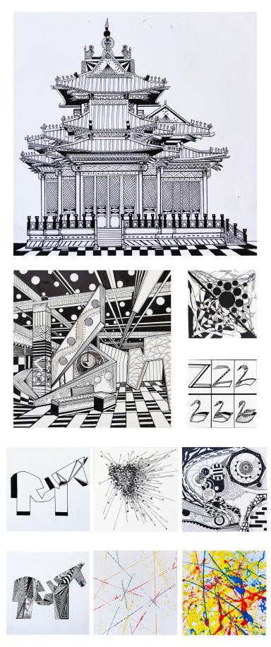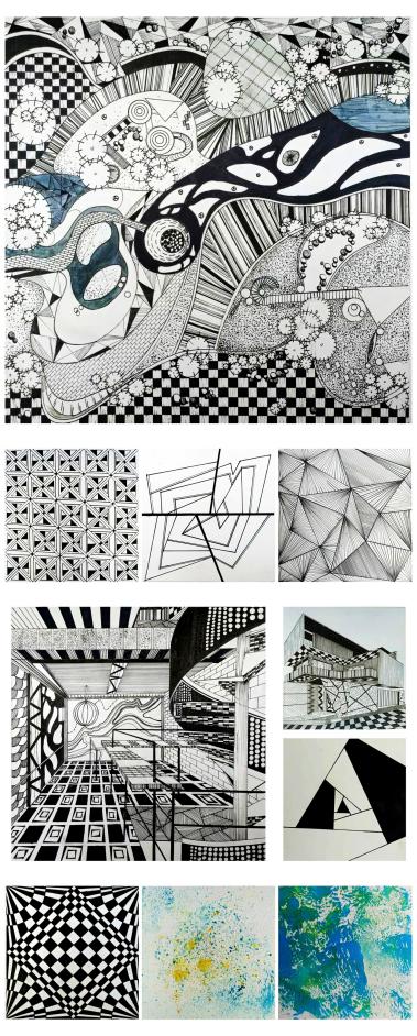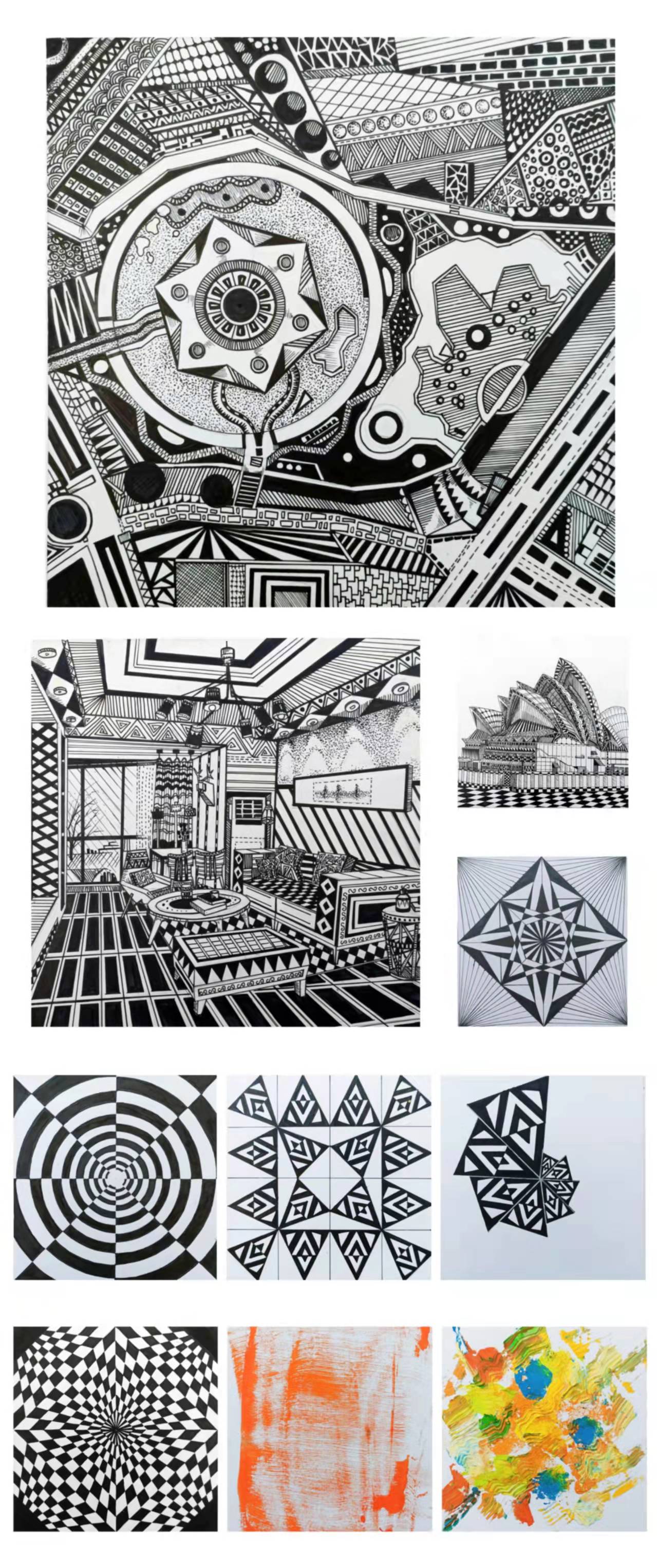 图形是图式语言的基本呈现方式,一幅画中,(特别是抽象画)表现的基本方式是点、是线、是面?不能太随意,也应该有一个类似于主旋律,一个母题,这样对于视觉的刺激才能够形成足够的视觉冲击。不同的点、线、面或者说图式语言对于认知的效果有所不同。