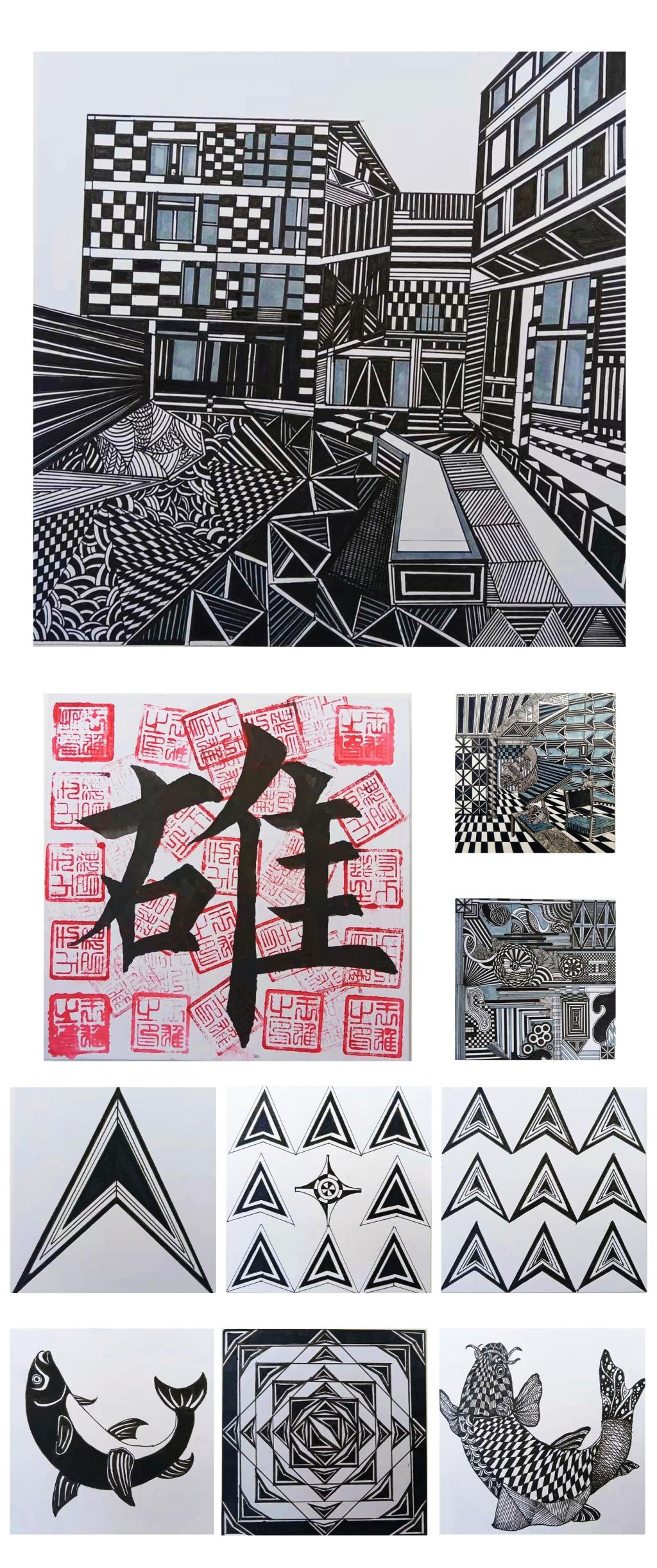 第二层意思是指通过艺术媒介材料的组构而表现出来的视觉艺术图式,它通过点、线、面、色、质感、肌理、结构等因素组构表现出图式的视觉形式效果。这里讲的是一种整体视觉形式效果,这种整体效应也就是一种视觉张力或形式张力,或者说形式表现力。它首先蕴含着对人类感知能力的激活作用:赏心悦目、醒目、震惊、迷惑,或冷漠郁然,等等。其次它又蕴含着对形式诸因的整合技能和规则。这是艺术品给予人的最基本的感受意味层。