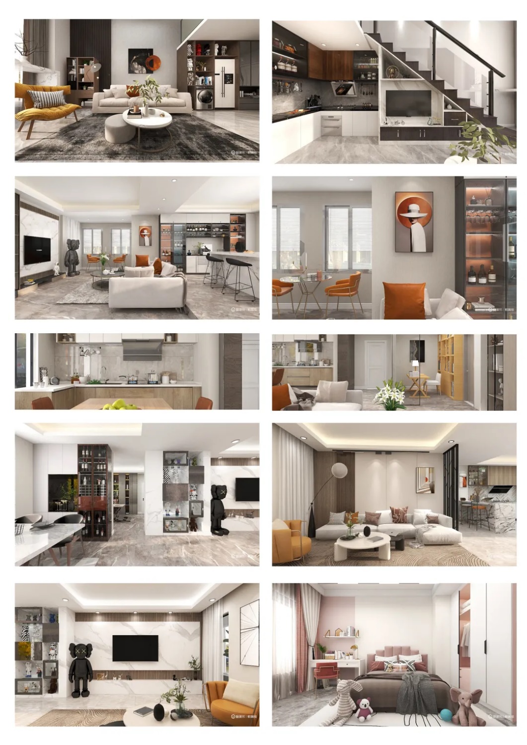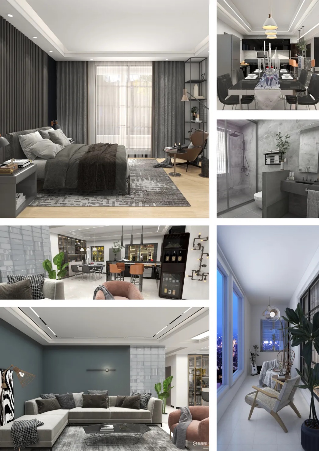 方案主要以灰调为主,装饰使用简单的现代元素,整体的感觉很时尚,通过用对比色来点缀整个空间,还添加了原木色,为整个空间呈现一种温馨的氛围、时尚典雅的风格。客厅选择简单布局,比例比较宽敞,以便最大限度地利用空间。轻盈豪华的餐厅,采用木制桌椅,然后搭配酒瓶与酒柜,整个餐厅橱柜让主人清新,经过精致的布局,优雅浪漫,更加渲染奢华的就餐。卧室里没有奢华的装饰,只有合适的灯光,有一种无负担、高质量的生活态度。