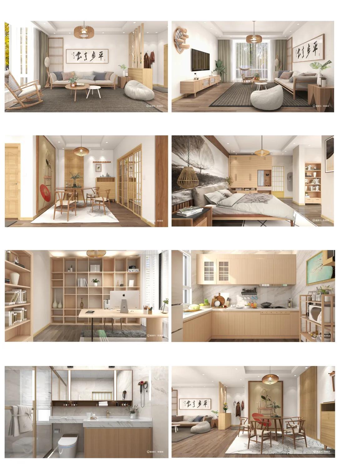 本方案的名称为《简木》,整套方案采用整体简约的布局搭配原木色及白色。成套的原木色家具作为空间的主角,洋溢着不加雕饰的美感,纹理质朴,色泽素雅,开放式的设计让整个家居环境更加开阔,视觉上也更加通透明亮,能够获得舒适与放松。运用几何学形态要素,避免物体和形态突出,尽量排除多余痕迹,采用取消装饰细部处理的抑制手法来体现空间本质,使室内布置清爽、有序,富有时代感和整体美。本方案主打诠释快节奏的城市寻找慢节奏的生活,都市的喧嚣与繁忙,本不该是生活的全部,用原木来装饰家居,褪去浮华质朴简雅,舒让空间回归自然简洁,可以为生活带来返璞归真的自在感受,诠释出“闲暇处才是生活”的理念。