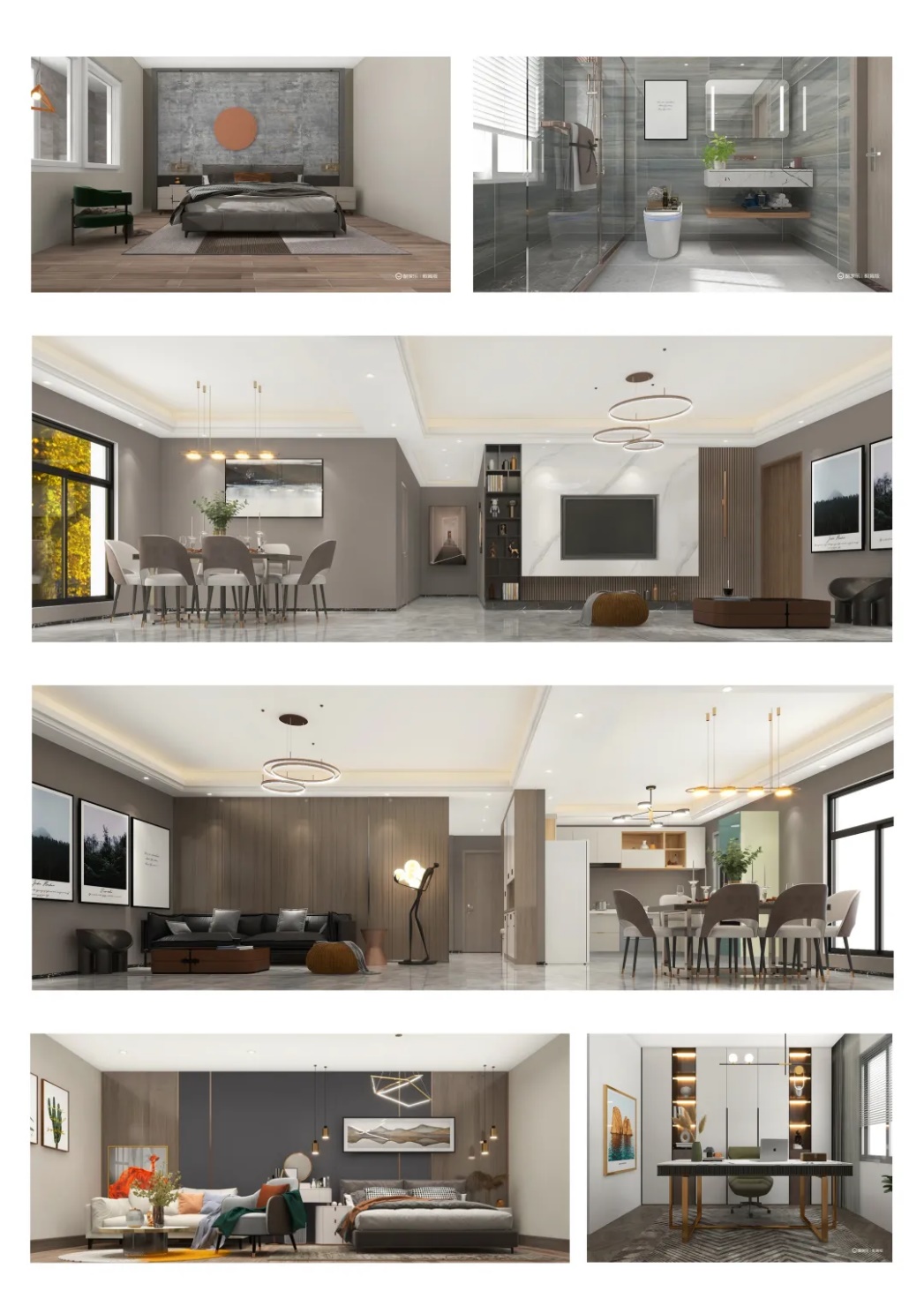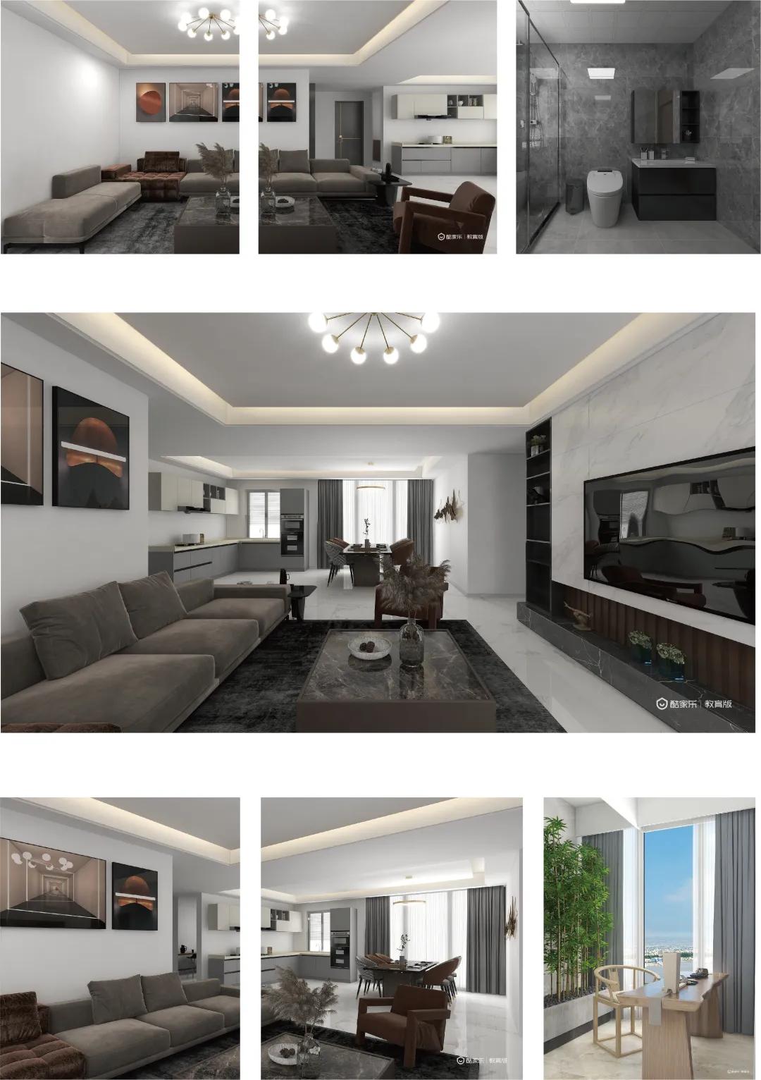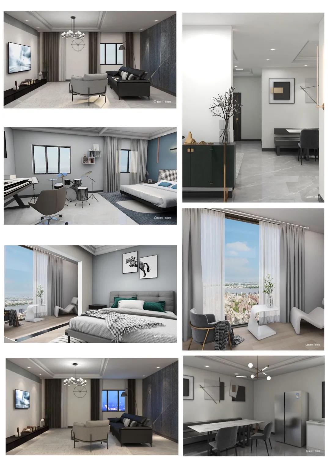 本次作业我还原改造了《你是我的荣耀》中迪丽热巴的四百平大平层。整体风格是轻奢现代风。整套房子只有一个卧室,客厅采用的下沉式设计,还采用了大型落地窗,超广的全景视野让整个房子采光都很好。厨房是开放式设计,中式西式厨房分开。卧室与洗手间以玻璃墙做隔断。影音室采用的软包处理隔音效果很好。