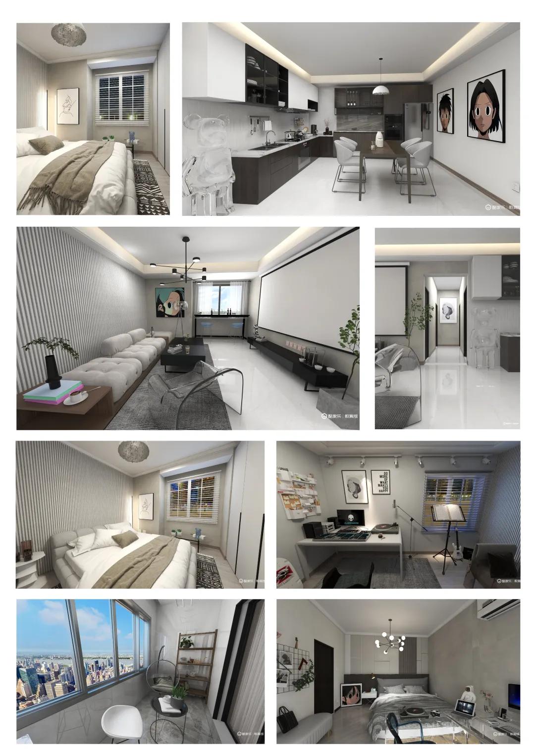 基于后疫情时代,我们陷入 “家”的重要性以及健康的生活和心态的思考中,本方案以丁克家庭为背景打破传统住宅墙体空间设计的局限,不是单纯为功能而做设计,而是为了引领甚至创造一种公共性,开放性,趣味性的生活方式。本空间由一扇隐形门将空间分为动静两大区域,整个静区抬升一节台阶,各自区域内打破又串联,在自由和平衡的健康氛围中实现灵魂伴侣的共生。