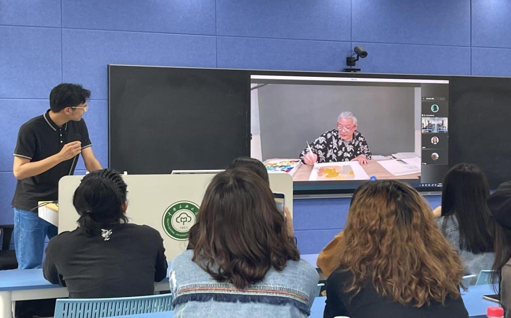 随后,马教授向同学们展示了大量的色彩构成画作,给同学们带来了一场不同以往的视觉冲击,并依次评述画作主题的构思过程,并指出色彩创作需要形色并茂,融入主题情感等。马老师丰厚的艺术修养和幽默风趣的讲解,授课过程中例举的研究实例,得到同学们的一致好评,课堂气氛十分轻松活跃。在课堂互动环节,在场学生还踊跃向马教授请教问题,马老师也先后为同学们解答分享了自身的心得与感悟,并主动进行画作直播示范予以详细解读。