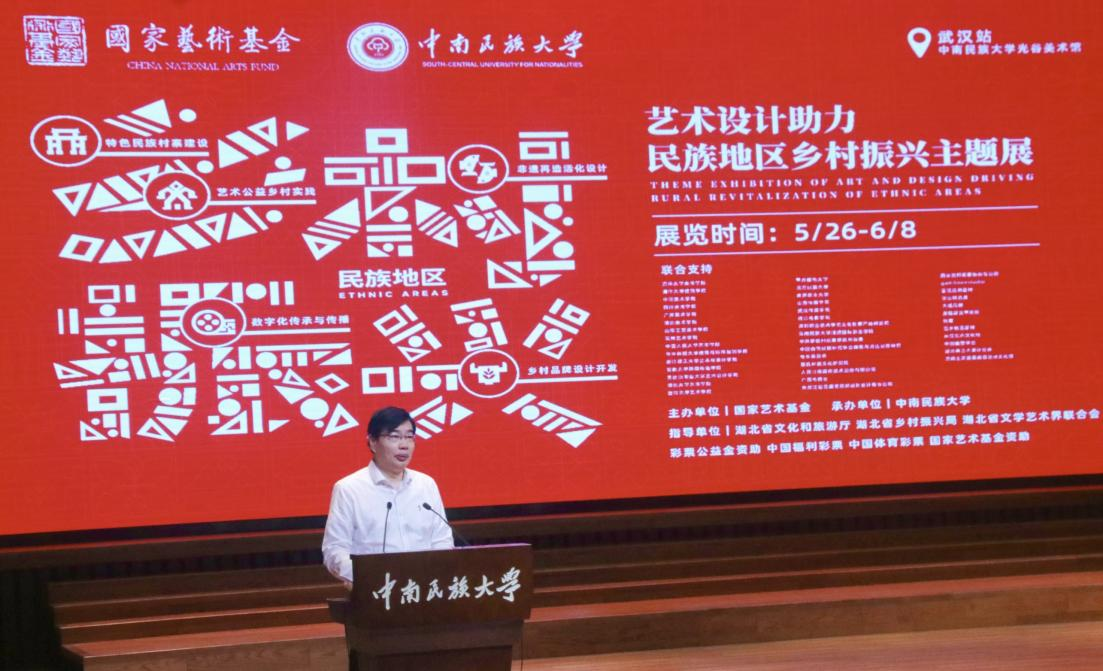 5月26日上午,由国家艺术基金主办,beat365官网承办,我院副院长程超教授主持的国家艺术基金传播交流推广项目《艺术设计助力民族地区乡村振兴主题展》在beat365官网光谷音乐厅举行开幕仪式,在光谷美术馆开展。