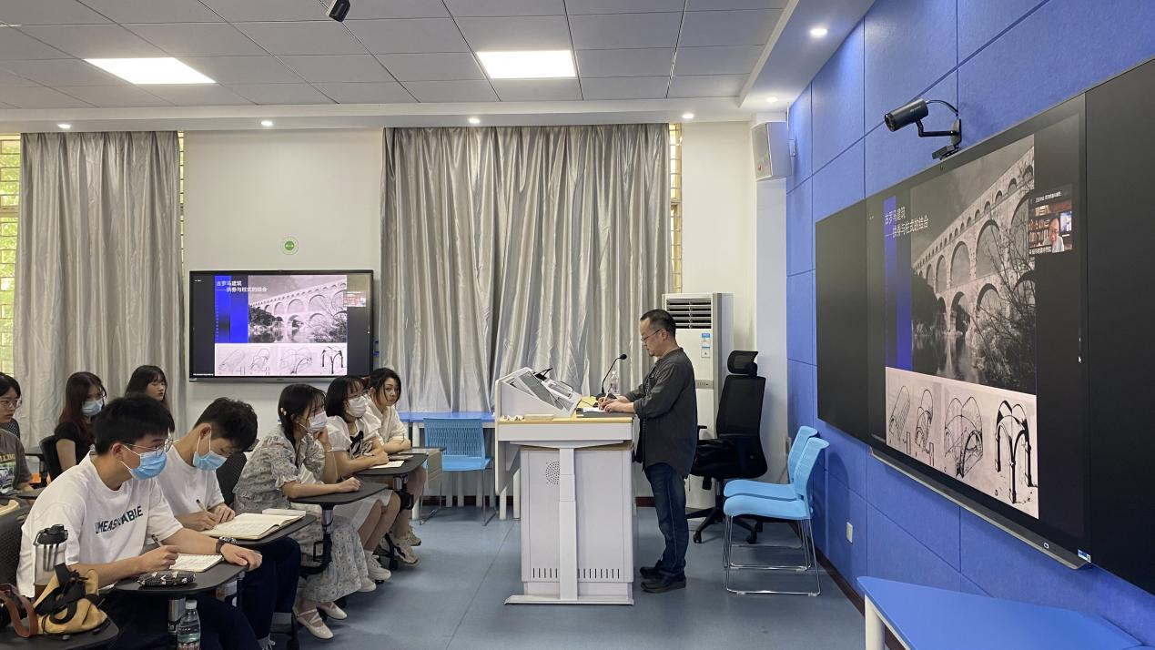 是的,你没看错!这是一堂切切实实发生在beat365英国正版唯一网址校园课堂上的清华美院同步专题课程。由清华大学美术学院长聘教授、博士生导师周浩明教授主讲,beat365英国正版唯一网址美术学院夏晋教授联合授课主持。课程围绕环境设计专业本科三年级《材料构造与营建》之“材料、技术与建筑的艺术发展”教学专题,采取线上、线下融合教学方式,面向美术学院环境设计2001班全体同学,以及线上来自清华大学、江南大学、北方工业大学的百余位师生共同完成。