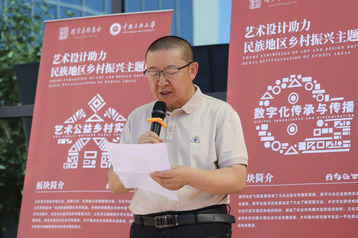 开幕式的最后,由北方民族大学党委书记刀波宣布国家艺术基金传播交流推广项目“艺术设计助力民族地区乡村振兴主题展”巡展·银川站正式开幕。
