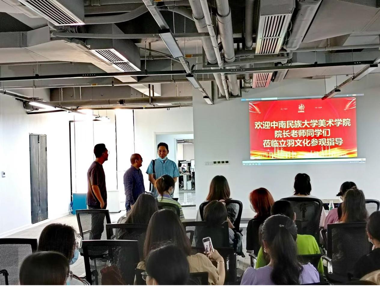 6月20日,为进一步搭建校企协同育人平台,推动学生高质量就业,美术学院副院长潘俊、视觉传达设计师生赴武汉立羽文化公司进行了走访参观和座谈交流。