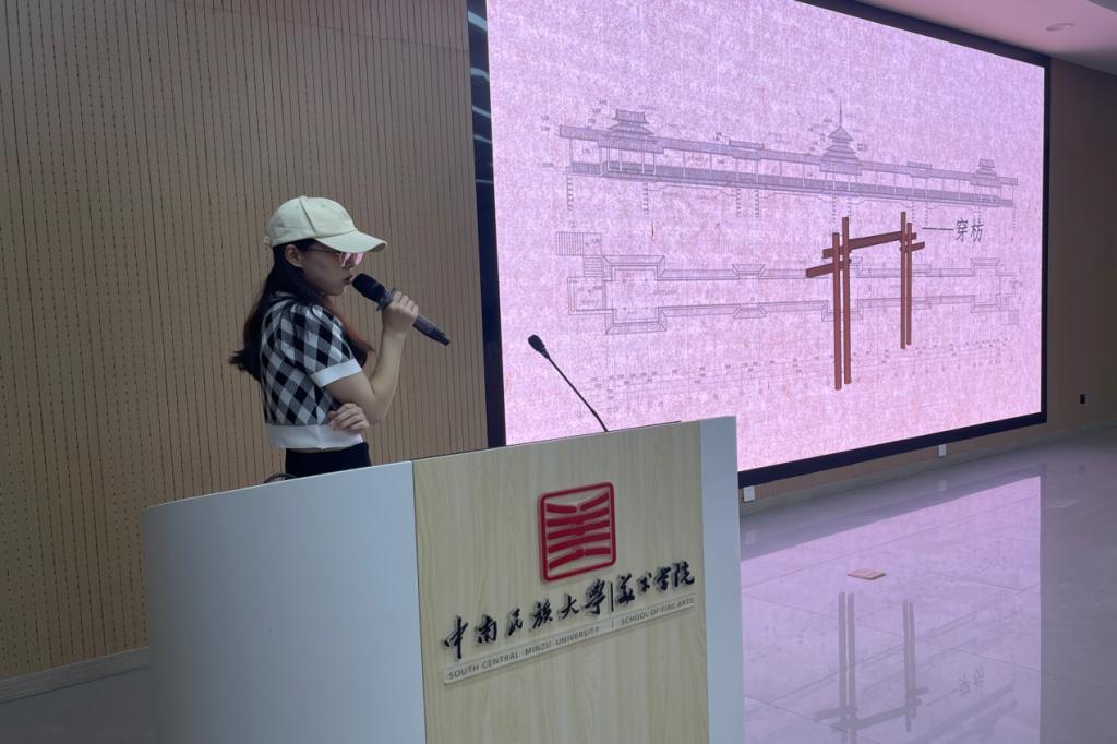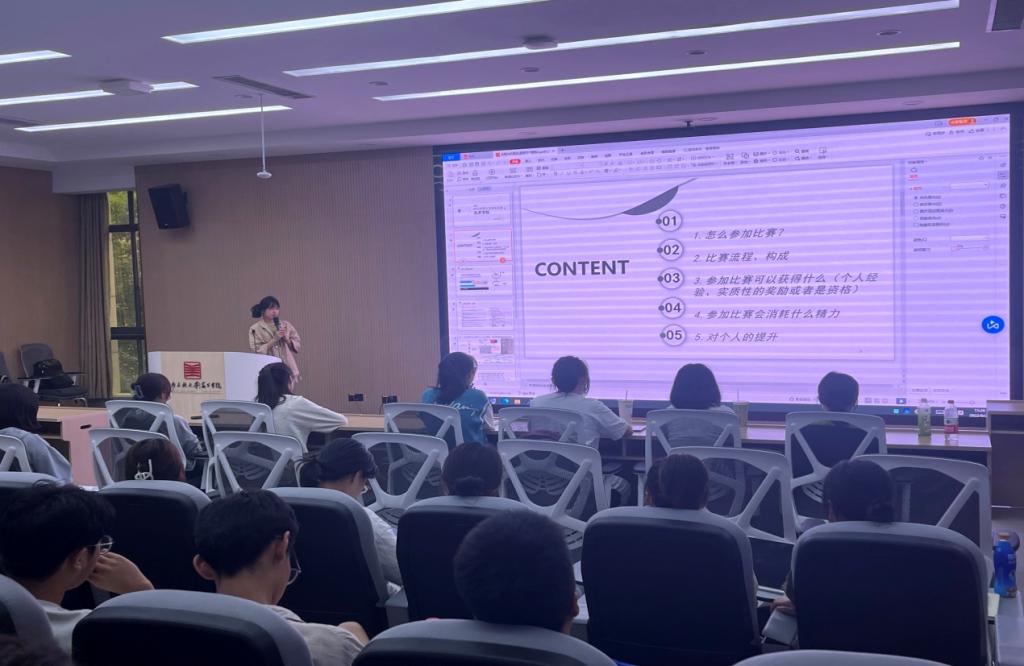 故事的开篇,由2022级艺术设计专业环境设计方向保研推免生杨晴月学姐开启。学姐以己为鉴,回首四年前自己初来乍到民大时的青涩与稚嫩,细数了自身从大一至大四成长过往的点滴与趣事,并精心为各位学弟学妹们准备了详细的专业知识图谱、学业扩展路径、各大专业赛事参赛指南等,赢得了广泛的掌声。