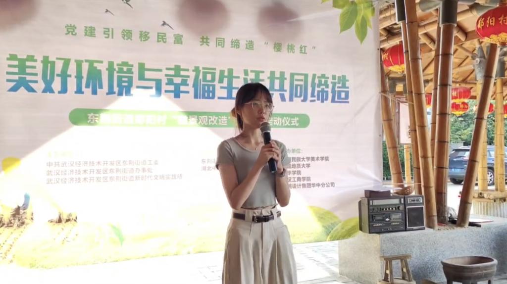 结营仪式上,20级环境设计专业研究生吴青同学,作为学生代表总结汇报了此次郧阳村乡村环境微改造活动的最终成果,并分享了自身课程实践活动的心得体会。此次活动改造成果,受到市区各级领导的肯定与表扬,并给参与相关活动的高校颁发了锦旗。