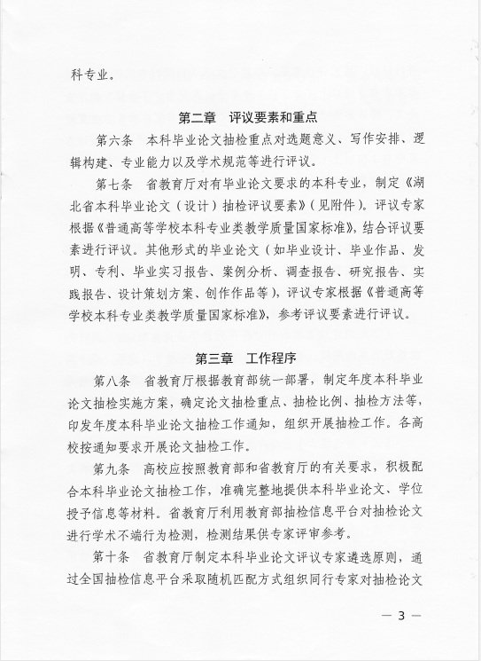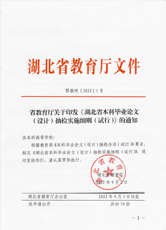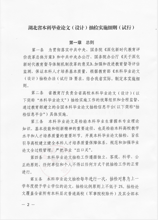 省教育厅关于印发《湖北省本科毕业论文(设计)抽检实施细则(试行)》的通知