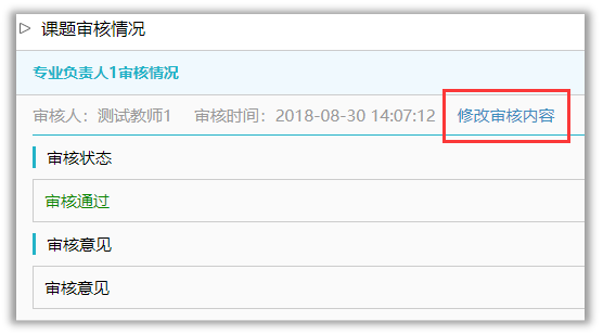 *已经审核通过的,系主任可以进行“修改审核内容”的操作,点击后可以对“审核意见”的内容进行修改(审核状态不可更改)