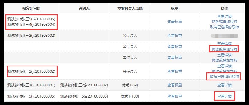 *若被分配的导师已进行了评分操作,则不能再“修改”或“取消”
