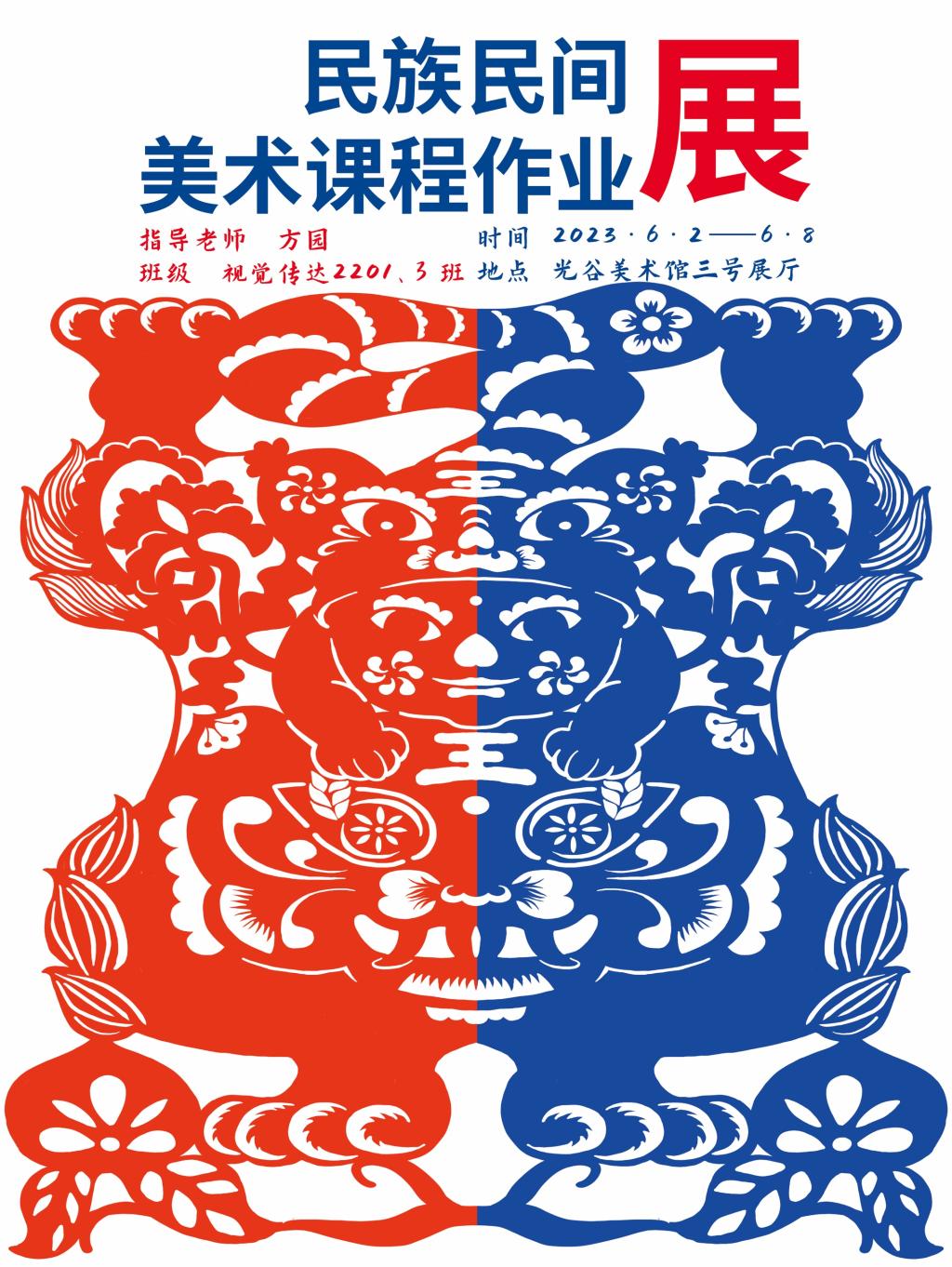 2023年6月2日至6月8日,美术学院2022级视觉传达专业1、3班本科《民族民间美术》课程作业展在美院展览馆3号展厅展出。