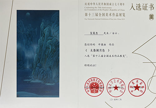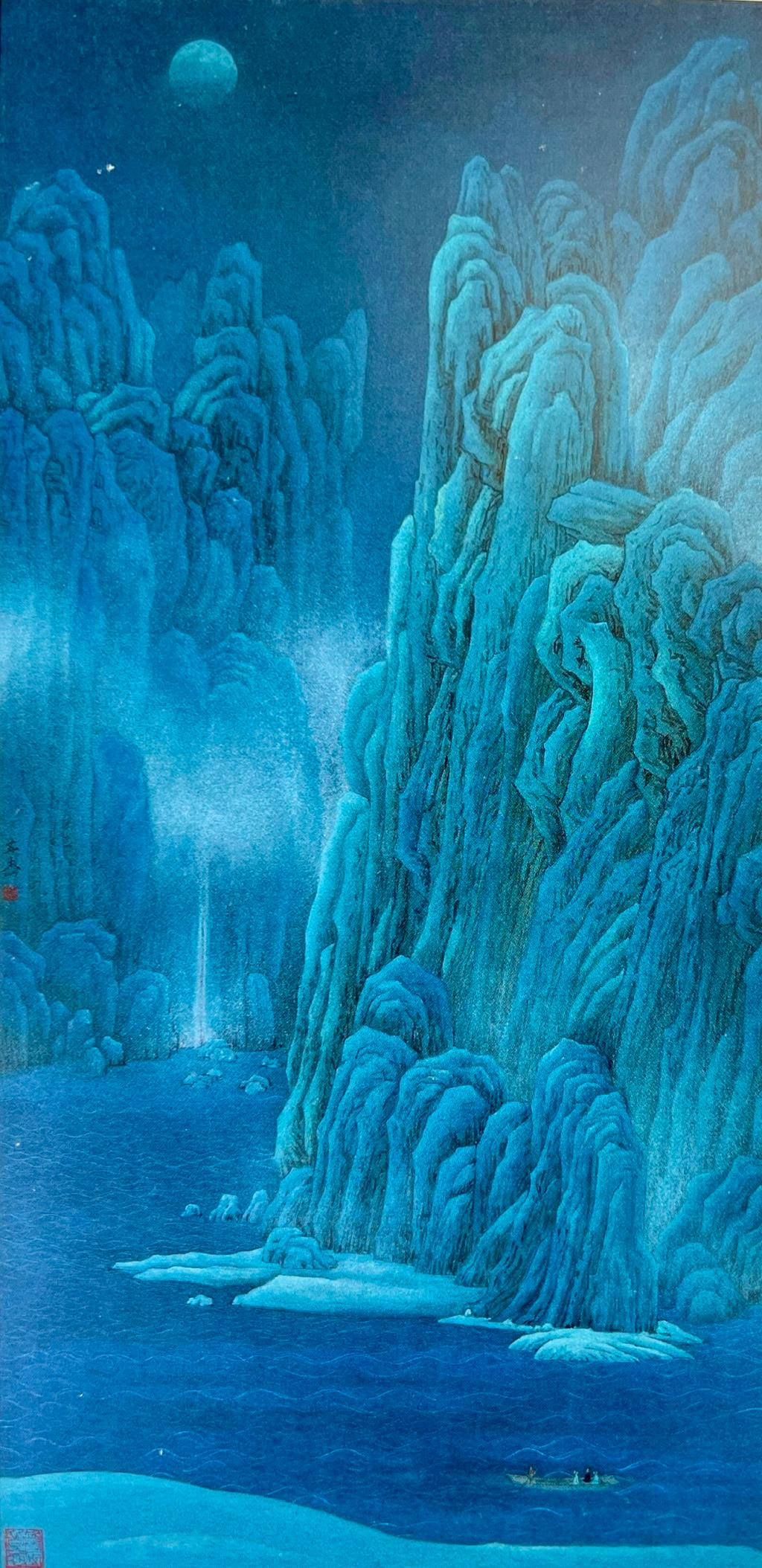 太鲁阁月色,获选第十二届全国美展国画。