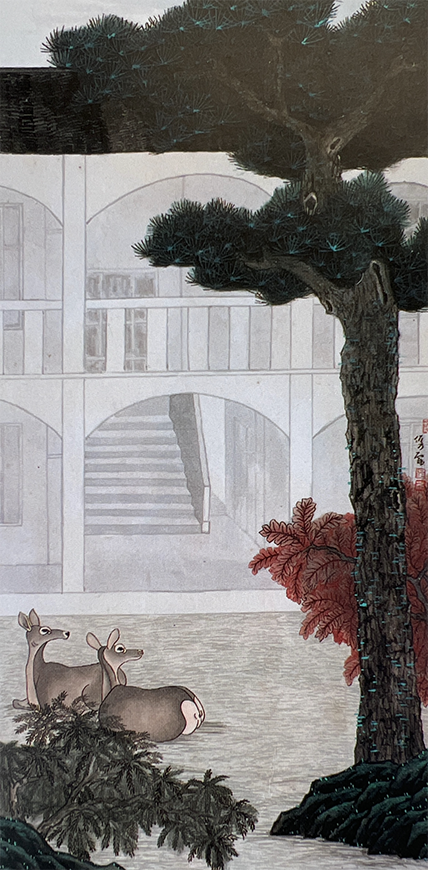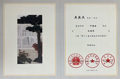 松鹿图,获选第十三届全国美展国画。