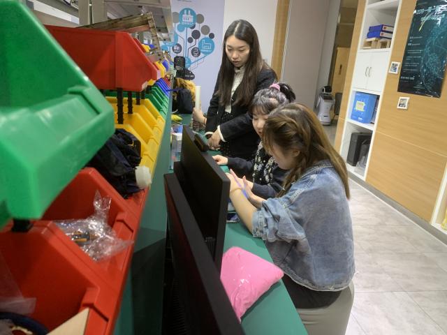 微工坊的罗总对研究生来实习基地表示欢迎,并向同学们介绍了微工坊的空间布局、承担功能、设备应用,以及相关的管理制度。据了解,微工坊现有潮玩手办工作室,主要设计原创潮玩手办;科创教育工作室,只要在微工坊研发机器人运动相关产品;激光文创设计工作室,主要依托微工坊的激光设备,开发了红色文创、科技文创。