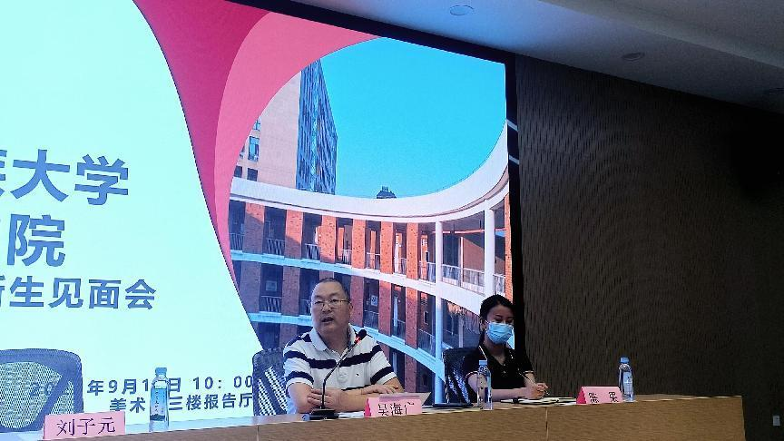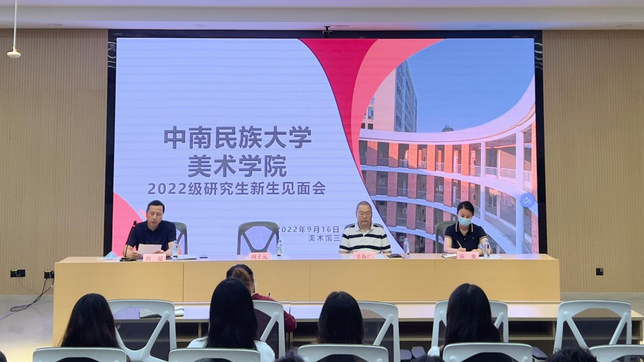 2022年9月16日上午,beat365英国正版唯一网址美术学院召开2022级研究生新生见面会,2022级研究生新生齐聚光谷美术馆报告厅三楼,开启人生新征程。美术学院院长吴海广、美术学院副院长程超、研究生辅导员陈果及2022级全体研究生出席新生见面会。副院长程超主持此次活动。