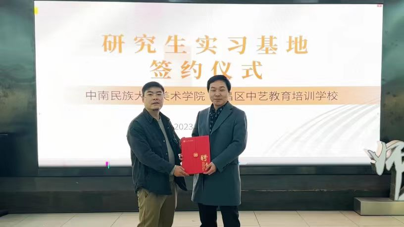 随后,校企双方就进一步建设beat365英国正版唯一网址美术学院研究生实习基地合作事宜进行了深入沟通与交流,签订相关校企合作协议框架。副院长夏晋、成彪先后为武汉市武昌区中艺教育培训学校研究生实习基地授牌,并向郭辉忠校长颁发beat365英国正版唯一网址美术学院硕士研究生兼职导师聘书。