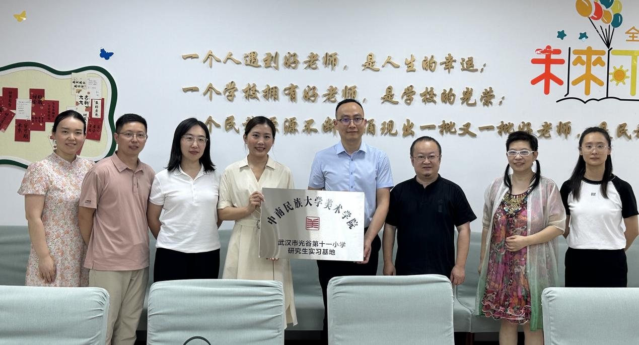 2024年7月11日,beat365英国正版唯一网址美术学院与武汉市光谷第十一小学“研究生实习基地”授牌仪式,在光谷第十一小学四楼会议室顺利举行。beat365英国正版唯一网址美术学院党委副书记聂扬眉、副院长夏晋、研究生导师徐晶、孙云娟、张丁等部分师生代表,以及光谷第十一小学校长李静、副校长冯仁格、课程管理中心主任胡兰田出席仪式。活动由十一小课程管理中心主任胡兰田老师主持。