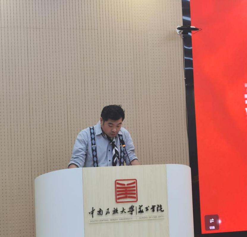 潘俊从研究生创新创业成果方面,对学院创新创业板块进行介绍。他表示学院“双创”是培养同学们创新精神和创业能力的平台,建议大家积极参加学科竞赛,在实践中对自己的作品做进一步的打磨,学会将自己所学与其他专业进行跨学科融合,鼓励同学们通过参加这些活动来激发自己的创造潜能,促进艺术与科技、商业的跨界融合,努力成为有创新意识和实践能力的美术人才。