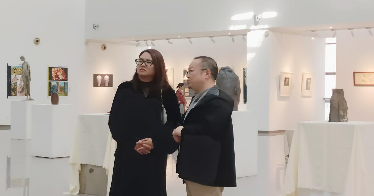 夏晋代表学院对黄莫曦总经理的一行表示了欢迎,并邀请BPI公司代表参观了学院同期开展的“艺脉相承,同贺华诞——2024美术学院教师作品展”,就学院专业发展、办学理念,以及人才培养模式等方面进行详细介绍。