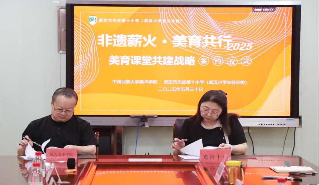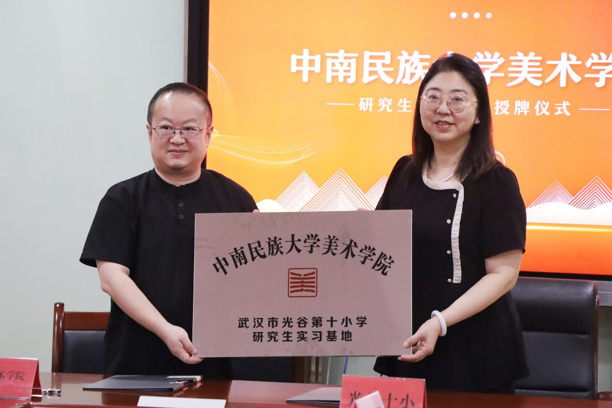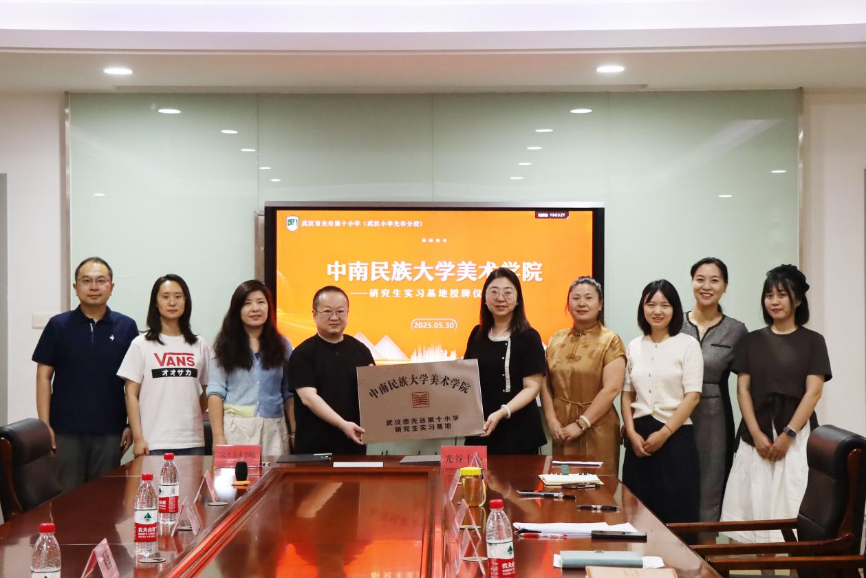 2025年5月30日,beat365英国正版唯一网址美术学院副院长夏晋、 美术学系副主任姜小渊、 研究生教秘张丁、实验教学示范中心黄骏、研究生代表等一行前往武汉市光谷第十小学开展beat365英国正版唯一网址美术学研研究生实习基地签约活动。武汉市第十小学校长王凌、副校长何霞玲、副校长王婷、学生成长中心副主任周旋、美术备课组长岳新银等参加授牌仪式,活动由周旋主持。