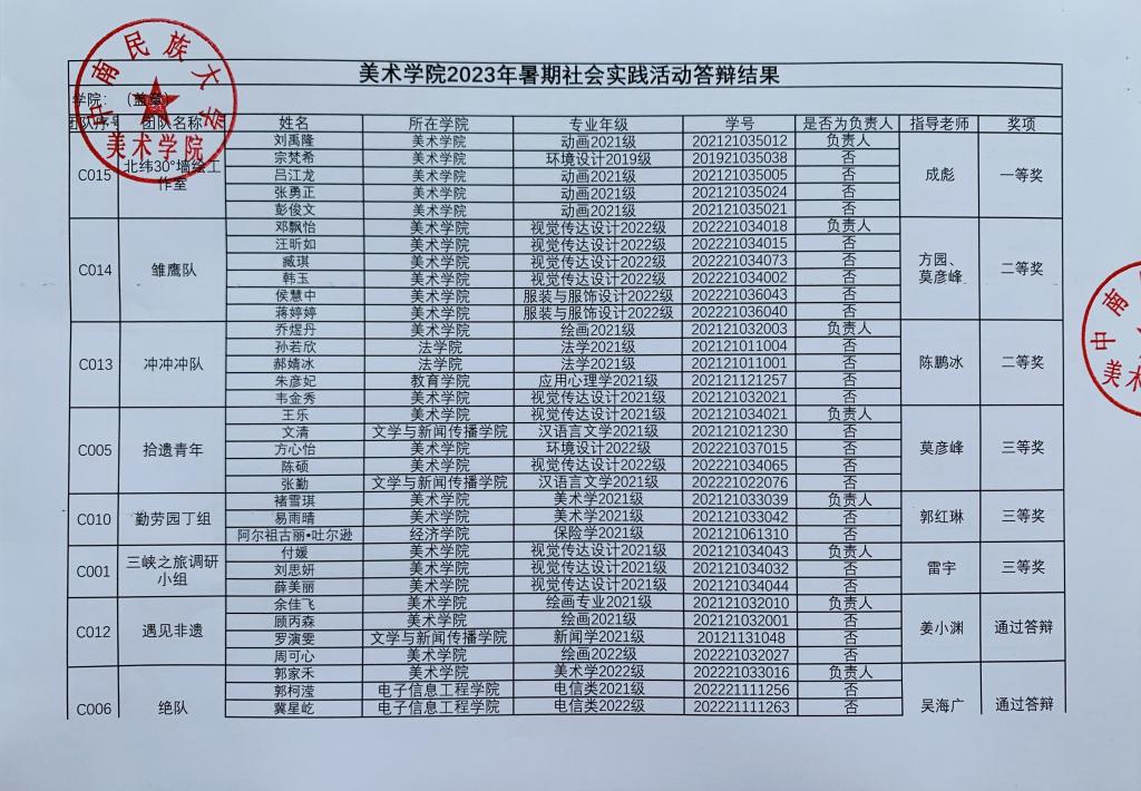 美术学院2023年暑期社会实践活动答辩结果